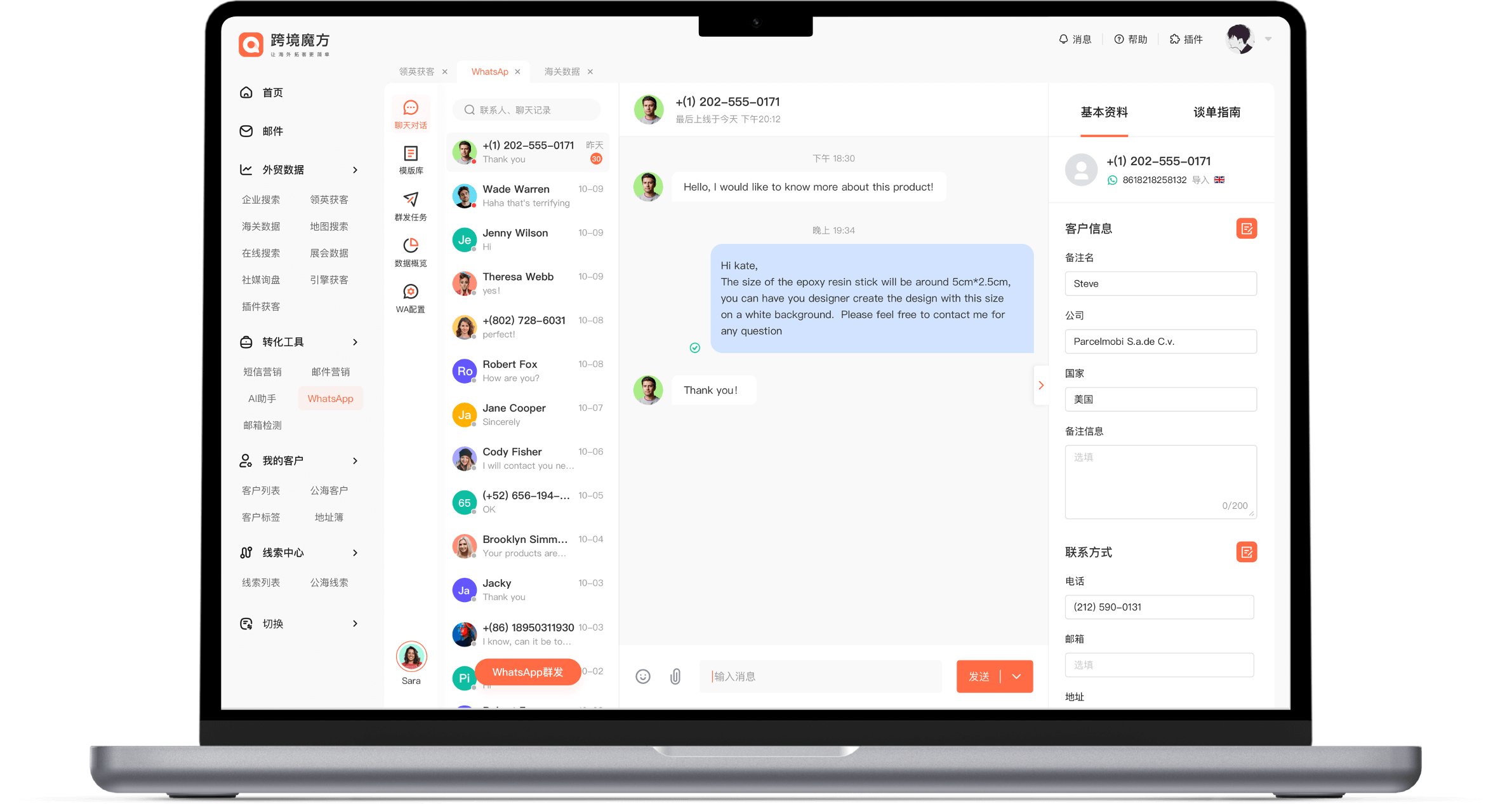 一键营销,高效触达客户;批量发送邮件、短信、whatsapp,方便快捷