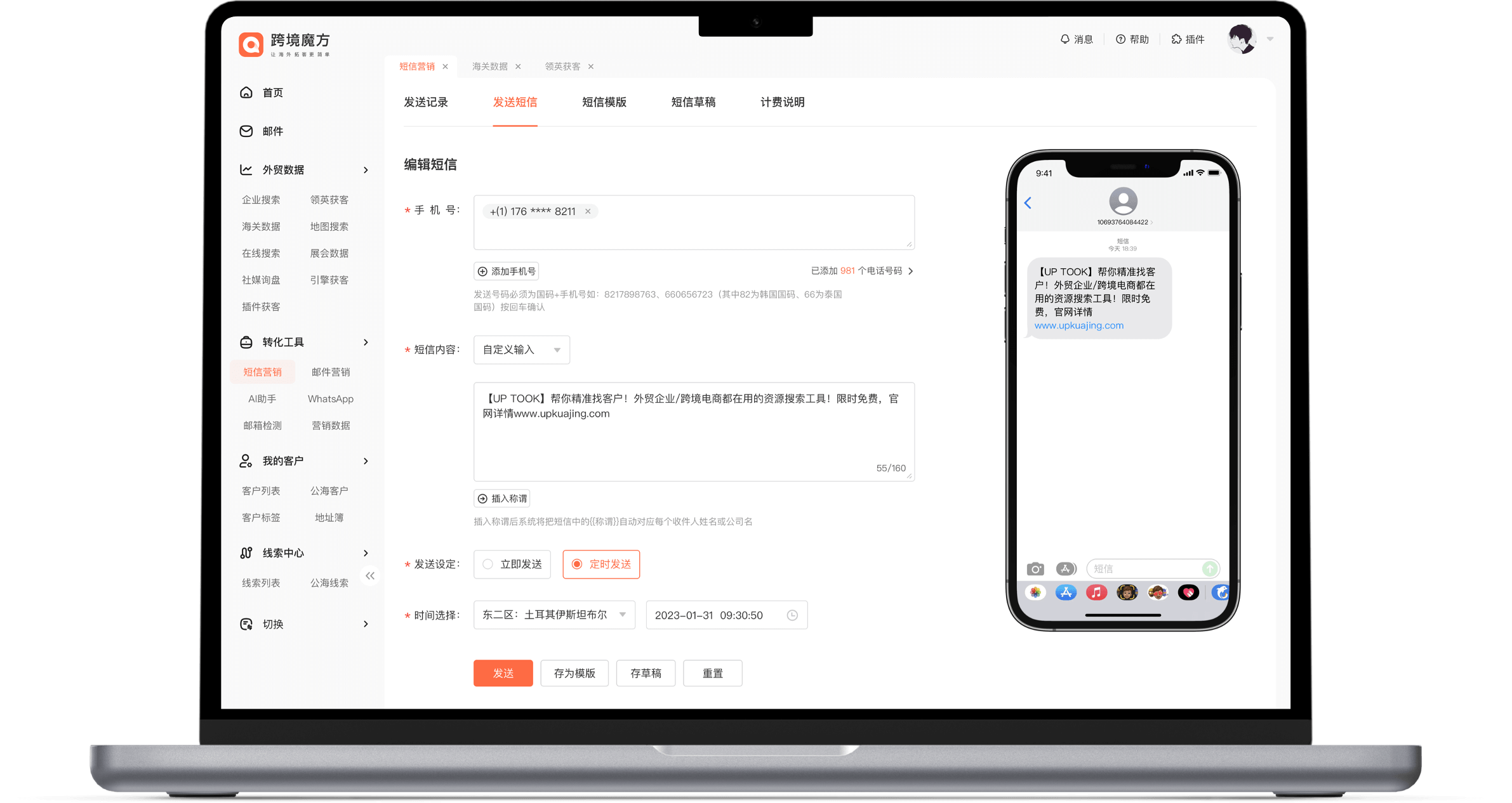 系统自动发送,智能过滤无效电话,同时支持多国覆盖,轻松传达信息,高效获客。