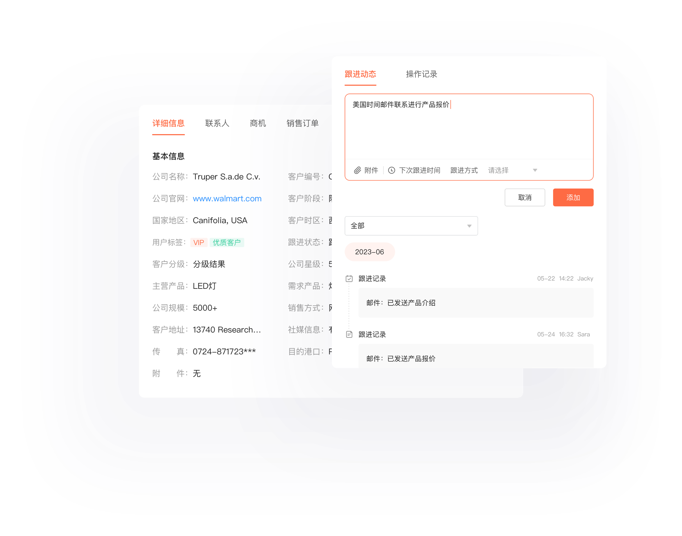 根据订单状态分类管理,掌握跟进进度,保障及时交付,跟单情况更清晰